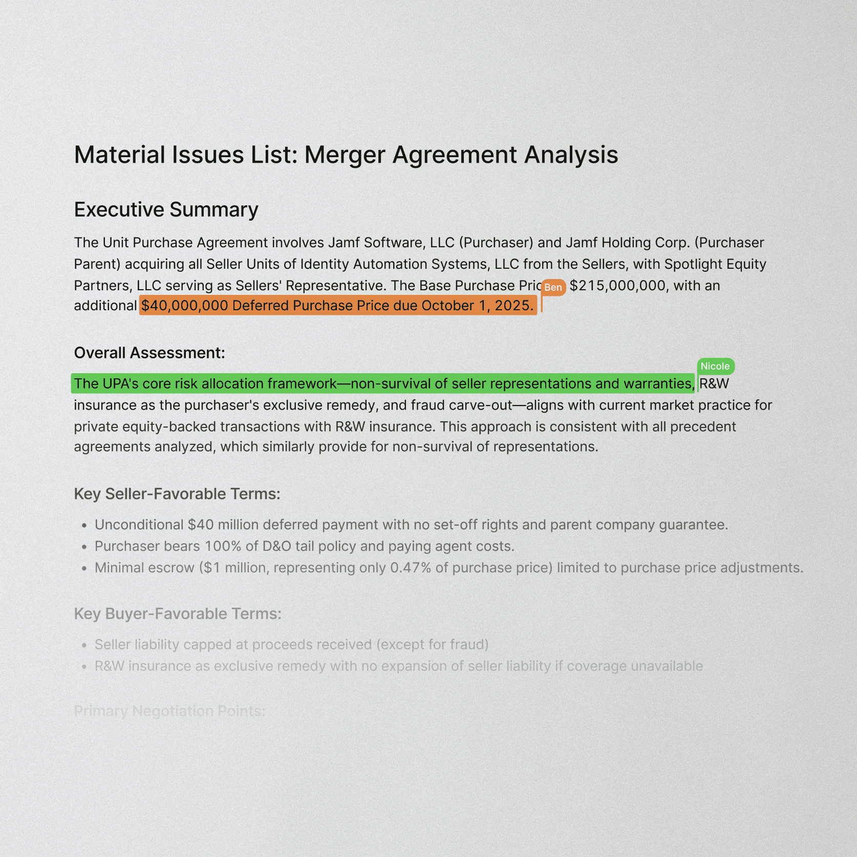 Editor takes the output from tools like Tabular Review and Assistant, and turns them into working documents, ready for collaboration, refinement and export.