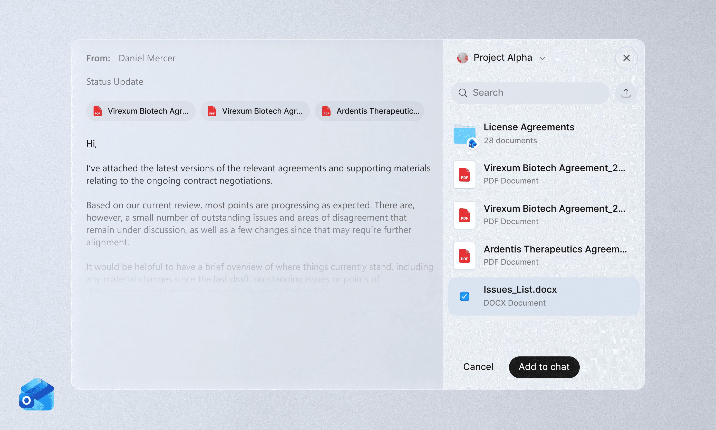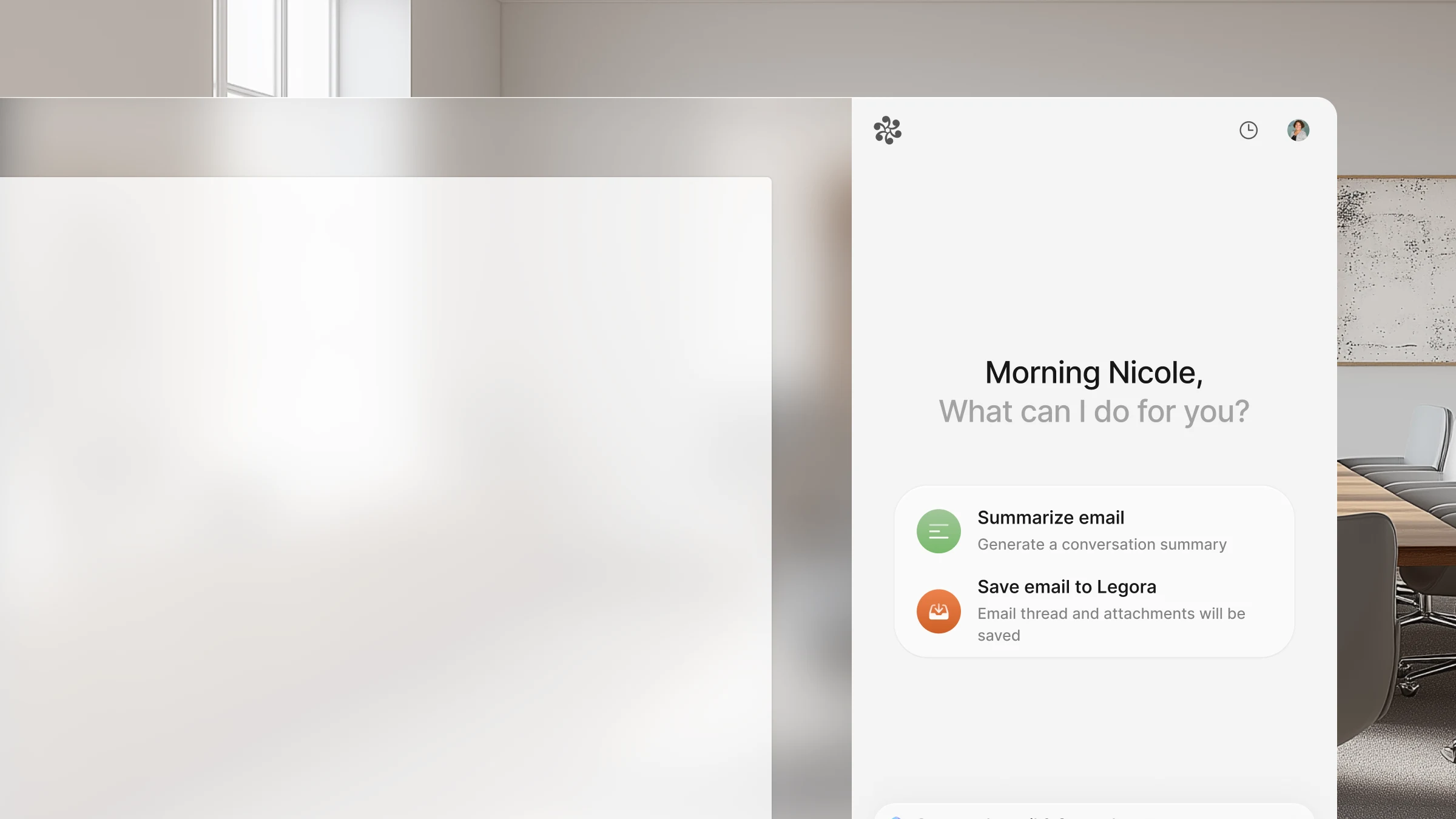 The Outlook Add-in brings Legora directly into the place where legal work actually happens: your email.