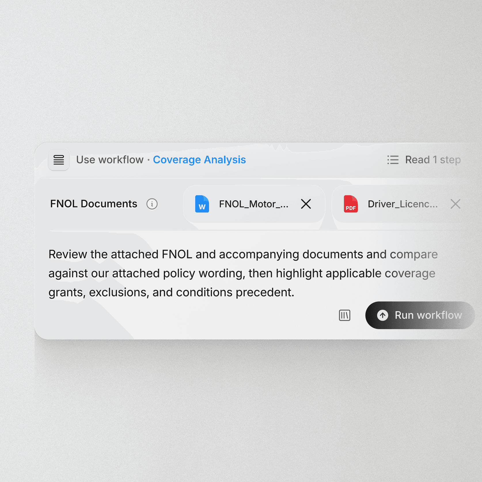 Legora ingests FNOLs, policy packs, endorsements, correspondence, and adjuster notes and surfaces things like coverage triggers, missing claim information, and early fraud risk signals. Compare claim facts against policy wordings and endorsements at clause level, highlighting applicable coverage grants, exclusions and conditions precedent.