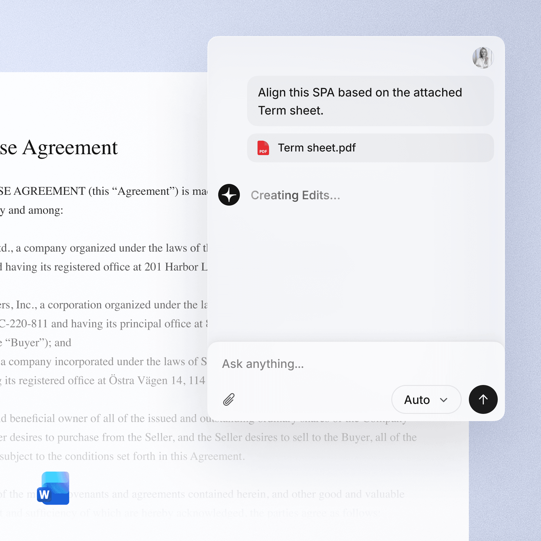 Legora is designed to fit into your existing workflows, with a simple, intuitive interface that lawyers and business teams can use from day one.